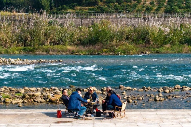 11月27日,云阳县堰坪镇刘家坝广场,市民在河边喝茶休憩。经过系统整治后的长滩河,河道景观焕然一新。记者 尹诗语 摄/视觉重庆