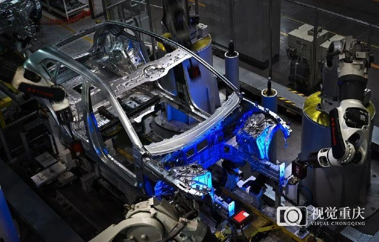 6月26日,位于渝北区的长安汽车数智工厂,机器人配合AI视觉在线检测系统检测车身精度。记者 张锦辉 摄/视觉重庆