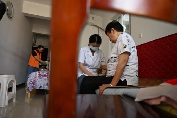 6月16日,璧山区璧城街道杨柳坝社区,工作人员在居民家中为老人提供清洁、体检服务。记者 崔力 摄/视觉重庆