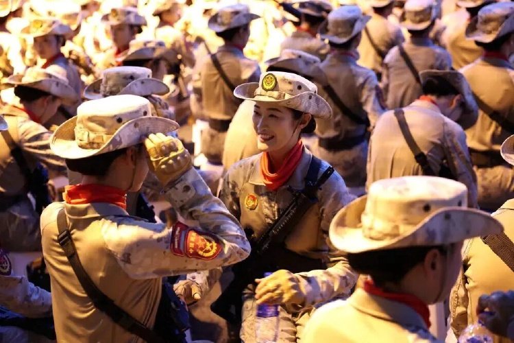 9月3日,纪念中国人民抗日战争暨世界反法西斯战争胜利80周年大会在北京隆重举行。这是纪念大会开始前,受阅部队在整理着装。记者 雒圆 摄/新华社