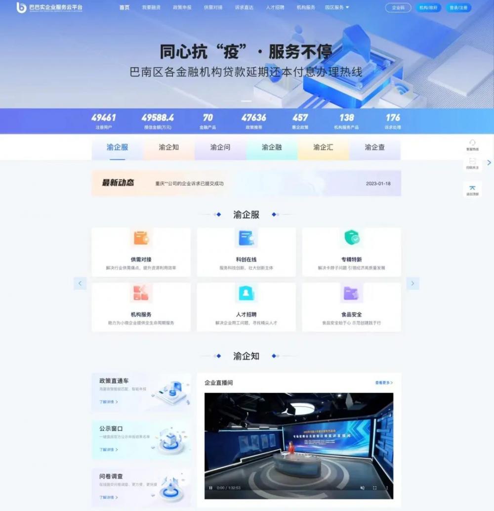 巴南区通过“巴巴实”平台在直达的基础上已升级迭代为“直达+直播”,特别是区级部门领头出台的政策,由区政府统一发布以后,由出台政策的部门落点到出台拟写政策的科长,在直播间直播政策,向企业第一时间解读政策、回应诉求、升级迭代。