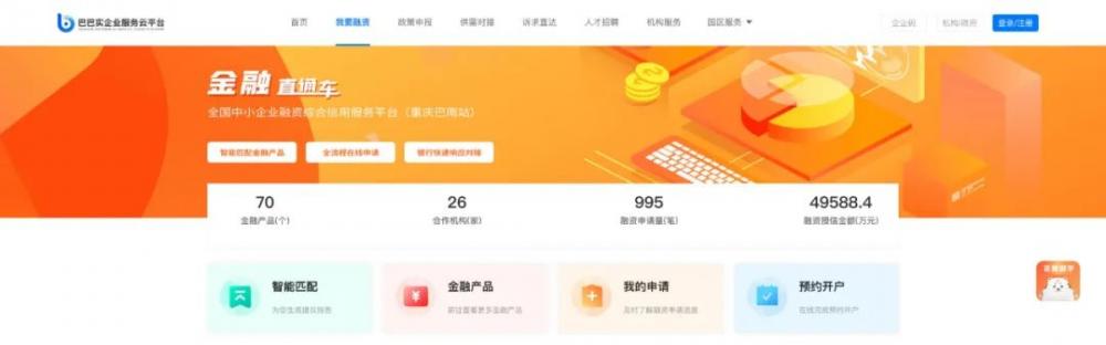 2022年,“巴巴实”平台共聚集金融机构24家,上线金融产品一共78款,实现了融资放款403笔、放款总量达到4.93亿元。