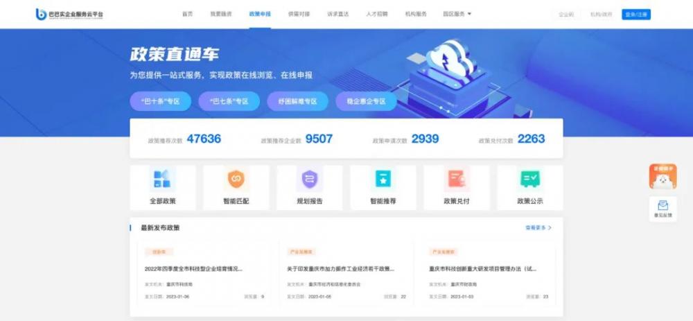 周密介绍,巴南区依托“巴巴实”,开设了稳企惠企业“巴十条”和“巴七条”申报专区,除了企业可以自主申报,该平台根据企业的情况,也会点对点把各项惠企政策推送给相关企业,企业通过线上筛选、申报,一般十几分钟就可以完成,足不出户一键享受政策红利。