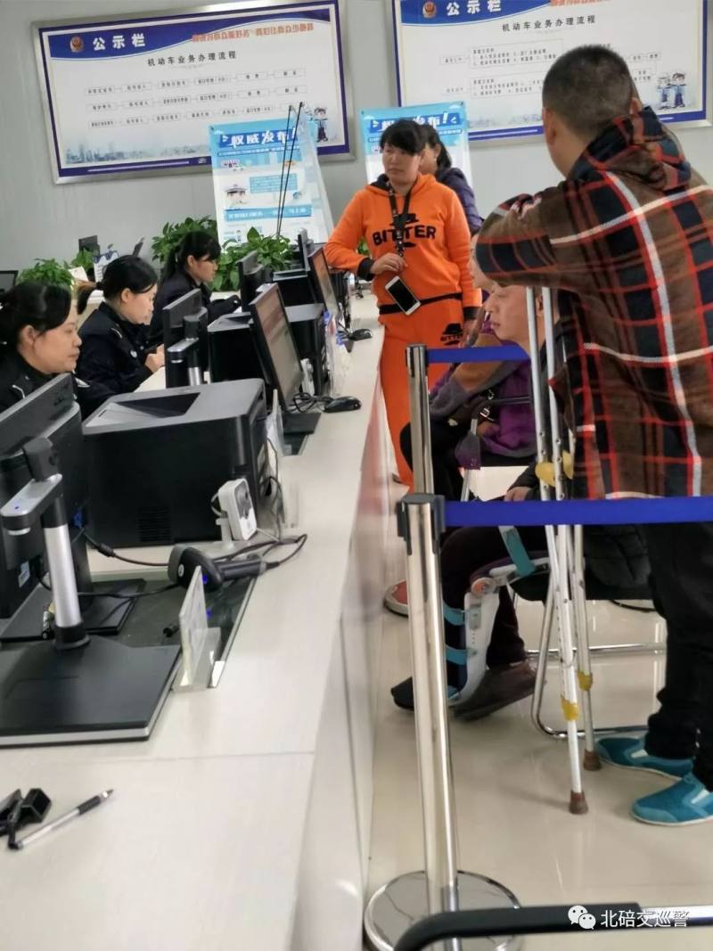 5月21日上午10时许,北碚车管所服务大厅来了一位特殊的群众,民警立即上前询问,原来是行动不便的残疾人王先生前来北碚车管所办理抵押登记业务。