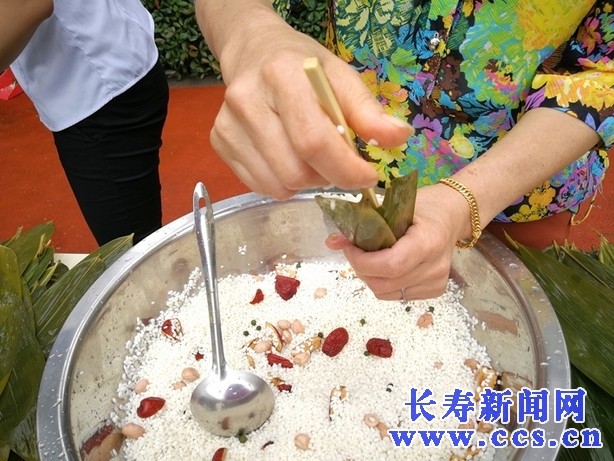 是独自来参赛,有的是由家人陪着参赛。不少选手动作娴熟,大家你追我赶。也有的业主跟着现学包粽子,“感觉很新鲜,很有传统节日的氛围。”