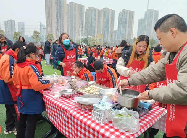12月19日,五一社区携手义渡小学,在学校操场开展“我们的节日·冬至·饺子宴”主题活动。