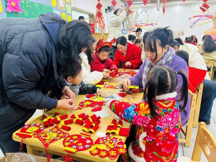 活动在欢快音乐中启幕,各年级幼儿身着节日华服登台,演绎经典迎新曲目,稚嫩声线与灵动舞姿赢得阵阵掌声。现场设置了“集福卡”打卡环节,涵盖锤炼能力的趣味游戏、溯源礼仪的传统竞技及融合体能与吉祥寓意的特色项目,寓教于乐。另有“鞭炮迎福”手工专区,志愿者指导幼儿用环保材料创作,幼儿完成打卡后可兑换礼品,让幼儿的规则意识与动手能力得到有效培养。