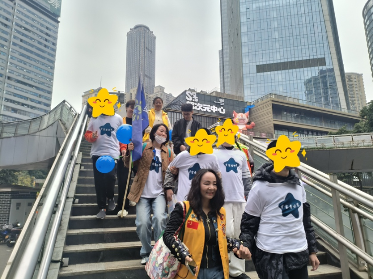 启动仪式后,众多民建会员和来自高校、狮子会等公益组织的志愿者,分12个组陪100余名“星宝”带着任务卡走进南岸区弹子石、江北区观音桥、渝中区解放碑和洪崖洞等景区,每组配备1名特教老师和10名以上志愿者,牵着孩子们的手身体力行培养孩子社交、学习和链接社会的能力。其中弹子石组带着3个8岁-16岁的“星宝”,走进了全国孤独症儿童关爱促进行动先行先试地区的重庆南岸区,耐心细致地教孩子们乘公交、喂白鸽、扔垃圾等,陪孩子们聊天,带着他们走进商铺和店员打招呼、自主买酸奶。孩子们紧紧挽住志愿者们的手,脸上洋溢着开心、好奇,偶尔也会有不解的表情,但志愿者们始终保持高度专注,细心解答孩子们的每一个疑惑,康复中心老师和家长们纷纷对志愿者们的付出表示感谢。