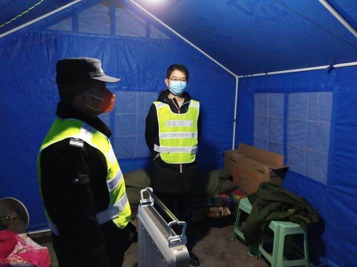 2月6号,杜市镇在辖区边界处设立了疫情防控检查点,实行24小时值守制度。李明乾主动申请夜间值守,对每一个出入的居民仔细量体温、车辆进行检查,对不配合的居民耐心解释。