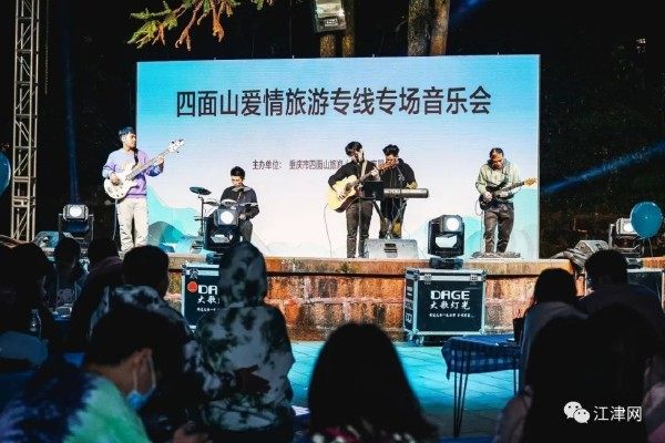 此次活动,四面山景区为爱情旅游“脱单”专线团,提供了一个广阔的交友平台:如在望乡台瀑布前搭建了别开生面的告白台,期间,一直播网红主播现场讲述刘国江老人关于6208级阶梯的爱情故事;设置网红气球墙为女孩子制造惊喜;举办烧烤音乐会,邀请重庆本土乐队带来精彩表演,《我是一只悲伤的猫咪》《同桌的你》等一首首脍炙人口的歌曲,混合着烧烤的热烈,一遍又一遍的燃烧着300余名大学生的激情。
