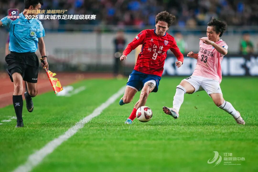 4月12日晚,重庆奥体中心,“渝超”总决赛重磅上演,江津润通动力队与两江临空队进行巅峰对决。最终,江津队以1比2憾负两江队,斩获“渝超”亚军。