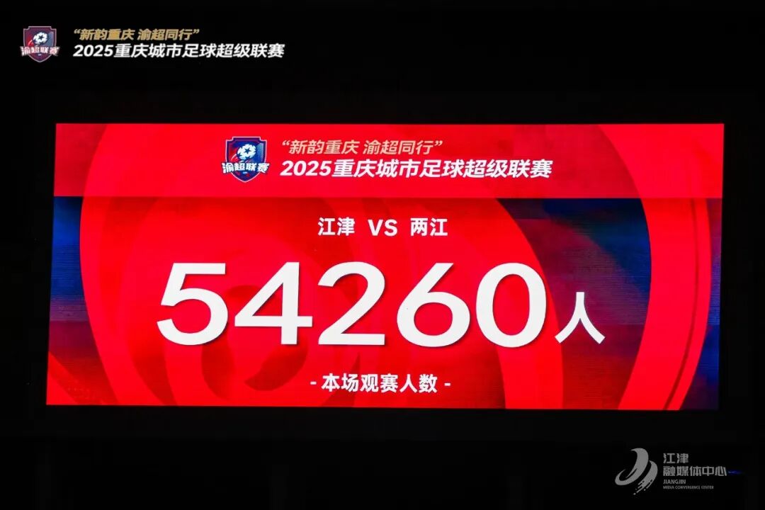 当晚,重庆奥体中心座无虚席、盛况空前,现场54260名球迷享受了一个美妙的足球之夜。来自江津、秀山、铜梁、綦江、万盛的球迷齐聚赛场,同心聚力为江津呐喊助威。现场“江津雄起”的呐喊声此起彼伏、响彻全场,昂扬热烈的助威氛围瞬间燃动赛场。