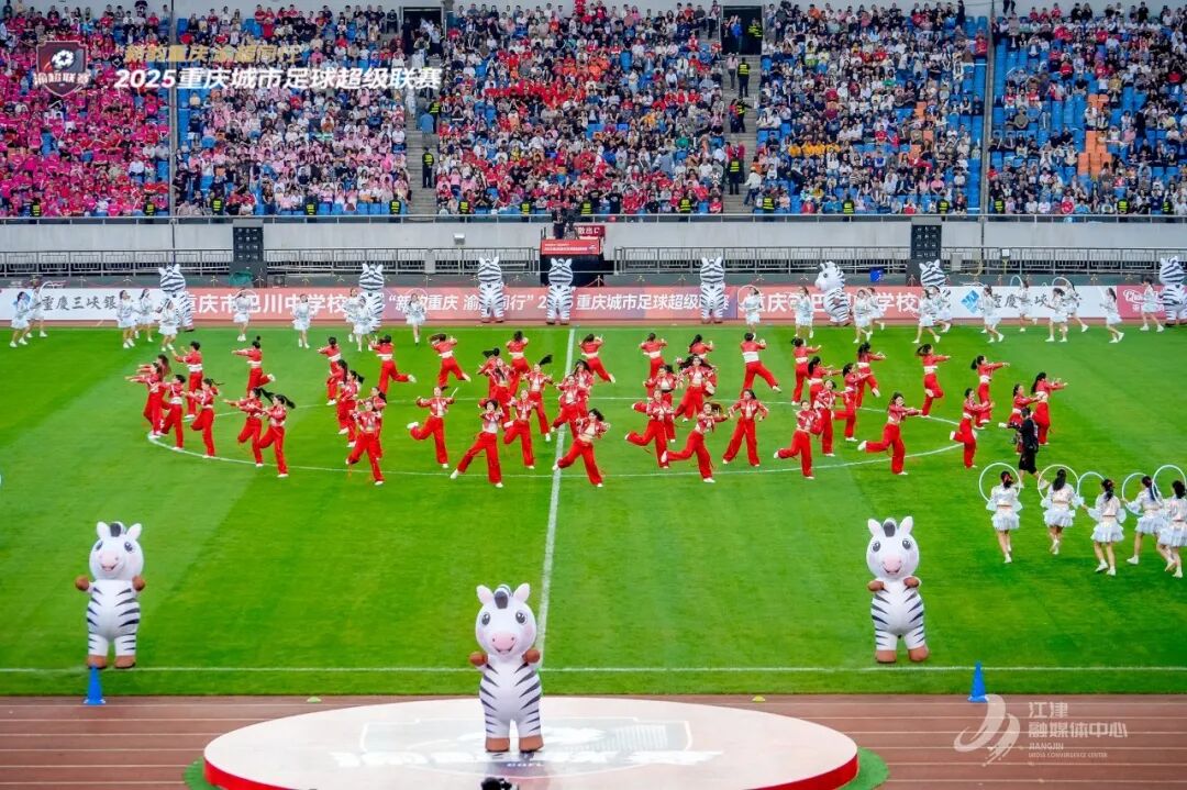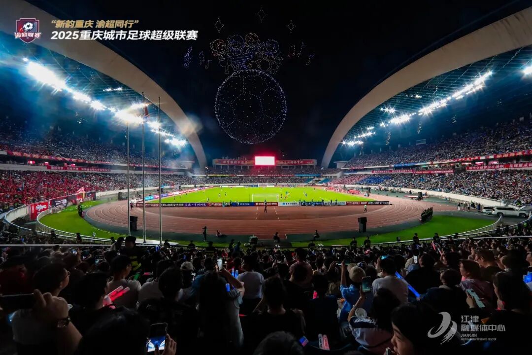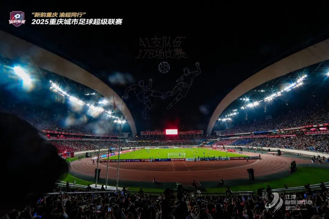 目光聚焦江津主场,城市文化的露天大秀开启。2000架无人机灯光秀,演绎“江津雄起”“工业之光”等动态标语,科技感与体育激情共振;先锋、蔡家、永兴、吴滩、杜市五镇主题花车巡游,以“花椒林”“贡米田”“桃花岛”“聂帅故里”等元素,串联城乡文旅脉络,带来“赛事即巡礼”的沉浸式体验。