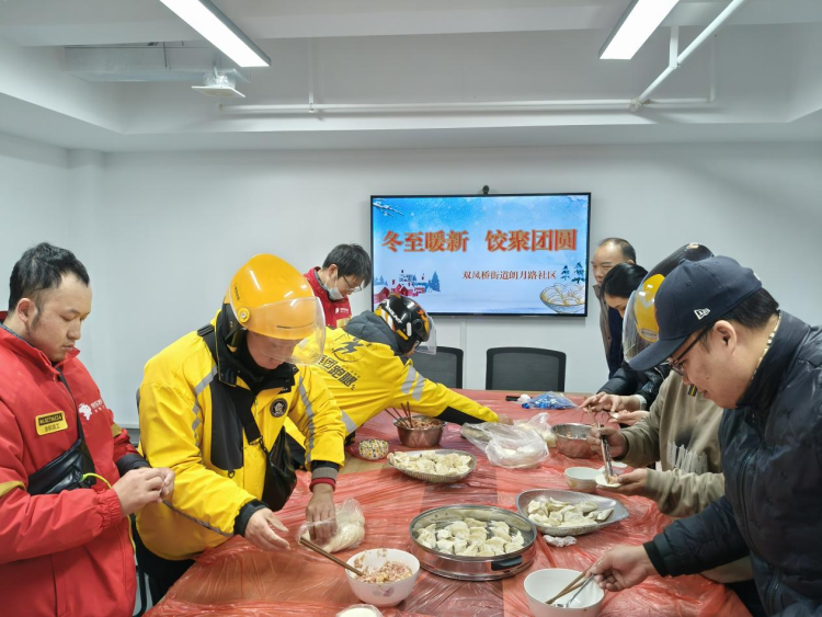 冬至将至,寒意渐浓。为切实提升新就业群体的归属感与幸福感,12月19日,两江新区双凤桥街道朗月路社区新时代文明实践站开展“冬至暖新 饺聚团圆”主题活动,活动邀请外卖骑手、快递员、网约车司机等新就业群体齐聚社区,共品传统美食,共叙邻里温情。