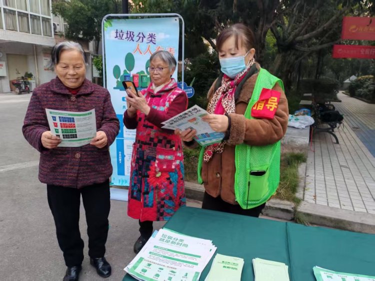 近日,重庆两江新区礼嘉街道联合重庆左岸环境服务股份有限公司,在白马社区教职工经适房小区开展垃圾分类定点宣传活动,以趣味形式让分类知识走进居民生活。