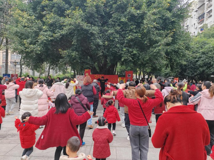 活动在幼儿园小朋友和居民们活力满满的新年贺岁舞中正式拉开序幕。小朋友和居民们身着喜庆服饰,伴随着欢快的音乐翩翩起舞,灵动的舞姿、饱满的热情瞬间点燃了现场氛围,赢得了阵阵掌声与欢呼声,也为本次庙会奠定了温馨欢乐的基调。