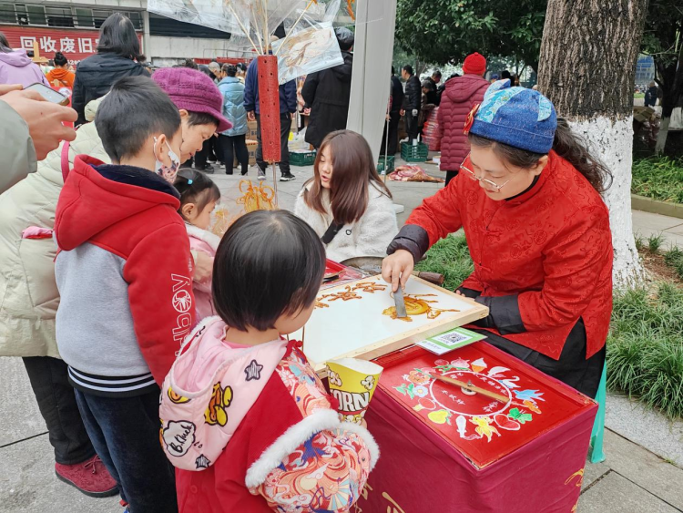 在文化体验区,写春联摊位前人气爆棚。社区书法爱好者挥毫泼墨,将美好的新年祝福融入笔墨之中,居民们排队等候领取属于自己的新年春联。旁边的糖画摊位更是吸引了众多小朋友的目光,民间艺人手持熬制好的麦芽糖,手腕轻转、手指翻飞,转眼间就化作威风凛凛的老虎、活泼可爱的兔子、栩栩如生的祥龙等造型各异的糖人。