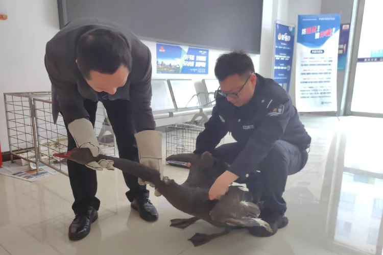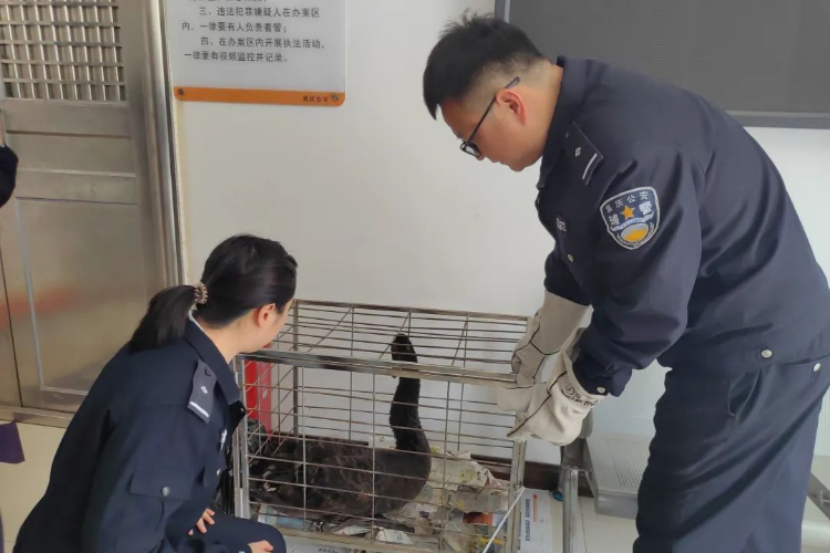 铜梁区公安局食药环支队民警很快抵达现场,确认该黑天鹅为开放性外伤,需专业医疗支持。因缺乏野生动物救治条件,民警当即联动区林业局野生动物保护站启动应急机制,开通救助绿色通道,协调市内专业动物医院紧急接收受伤黑天鹅。