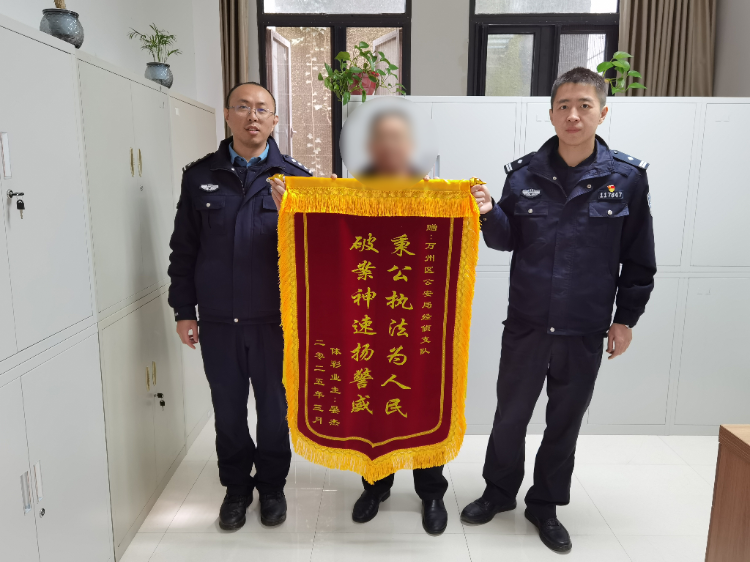 近日,重庆市万州区公安局经侦支队以“主动出击、精准打击”的高效行动成功查处一起使用假币案件,受害群众专程上门赠送锦旗,为警方快速破案挽回损失点赞。