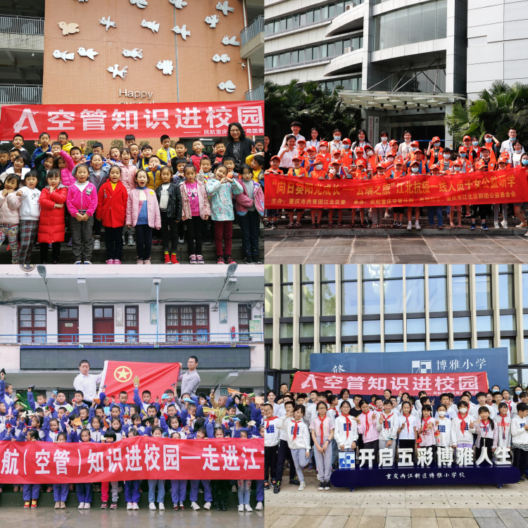 民航重庆空管分局团委自2017年启动民航(空管)知识进校园志愿者活动计划,6年时间里组织参加进校园志愿活动超过50次,覆盖人群超过3000人次,志愿者们足迹遍布首都北京、贵州大山深处、祖国边疆和重庆主城及周边各个区县。青年志愿者们用奉献、友爱、互助、进步的志愿精神树立起行业的良好形象,用心点亮青少年对民航空管行业的向往与憧憬。