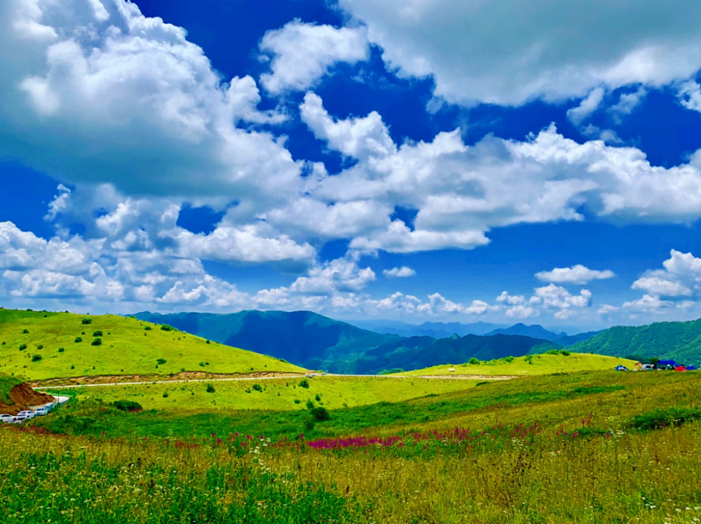 蓝天、白云、草甸……宛如人间仙境。(何成伟 摄)
