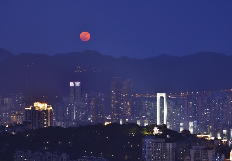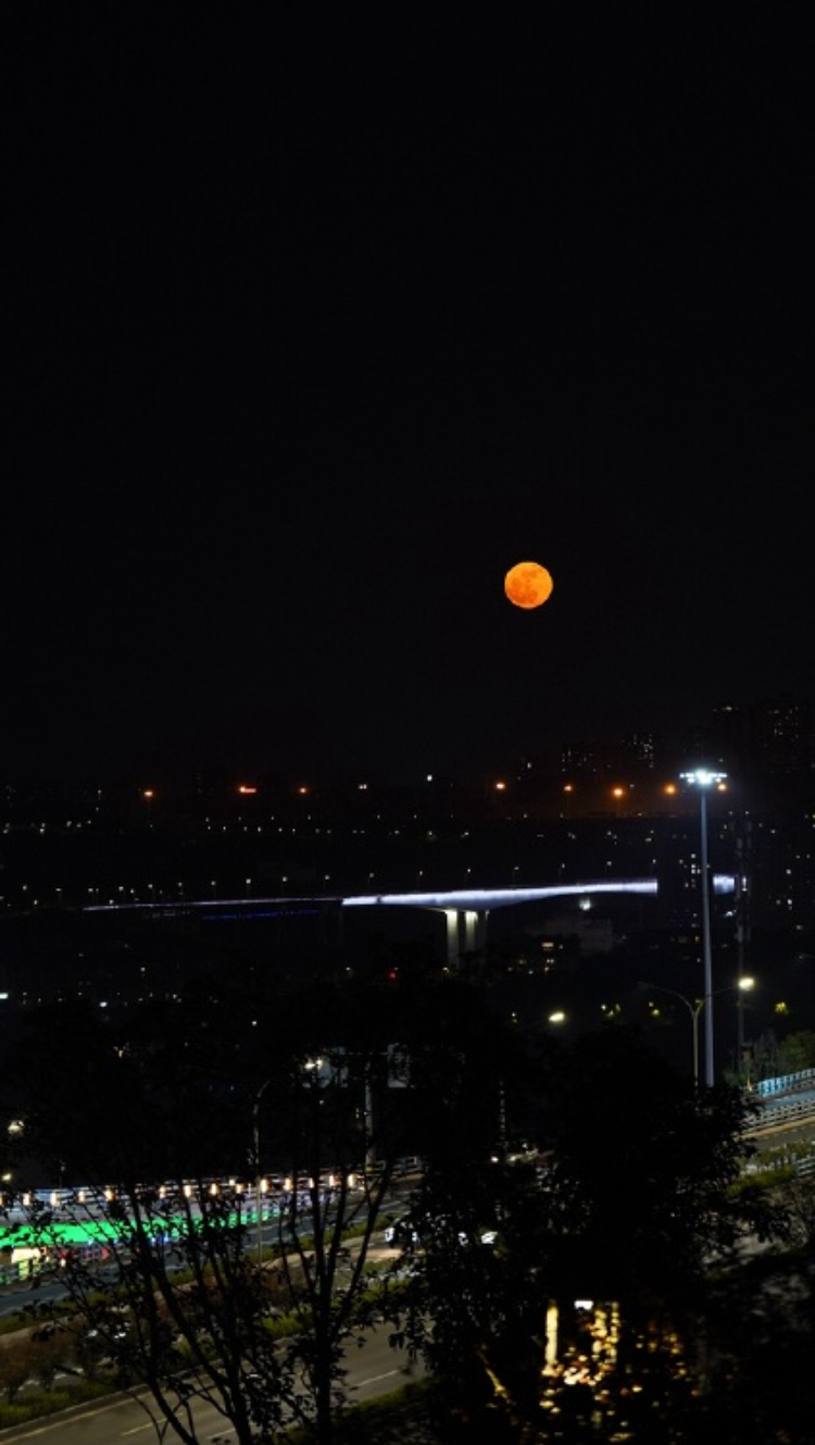 当暮色渐沉,这轮满月仿佛轻触地平线,与山城灯火温柔相映。因特殊轨道位置,此刻的月亮比往常更显硕大明亮,仿佛伸手可及。