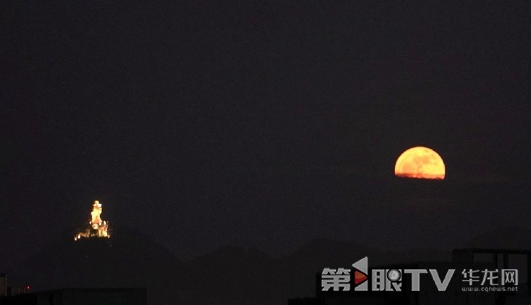 重庆江北嘴,满月从南岸区南山方向升起。第1眼TV-华龙网记者 石涛 摄