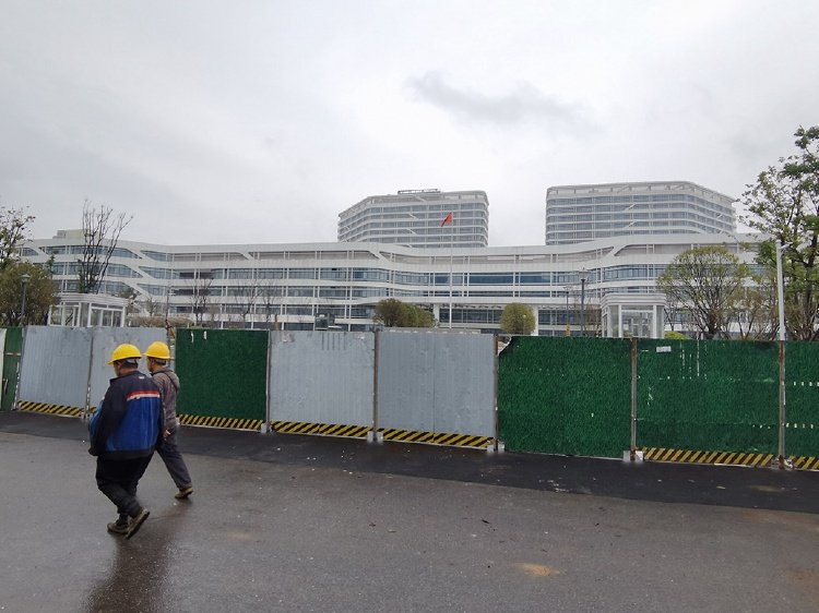 3月下旬的长沙,连续多天的阴雨天气后迎来了晴天。在长沙县郊区的特立东路北侧,长沙县人民医院的院区偶尔有工作人员进出。这里的主体工程已经完工,门诊后面两栋高耸的大楼已完成外墙装修,不过院区四周仍竖着封闭的围档。