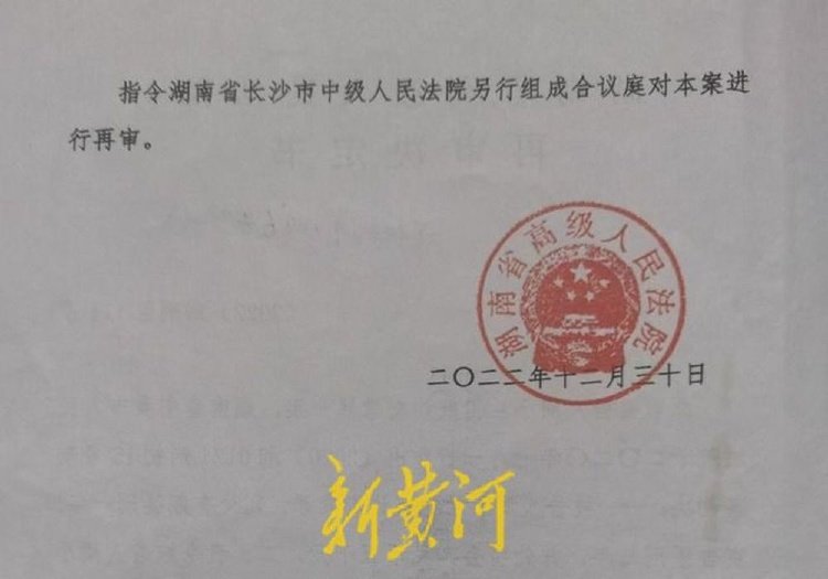 2022年12月30日,湖南省高院作出《再审决定书》称,本院经审查认为,本案符合应当再审的情形,指令长沙市中级人民法院另行组成合议庭对本案进行再审。