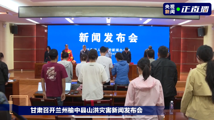 原标题:甘肃兰州榆中县山洪灾害新闻发布会现场为遇难者默哀