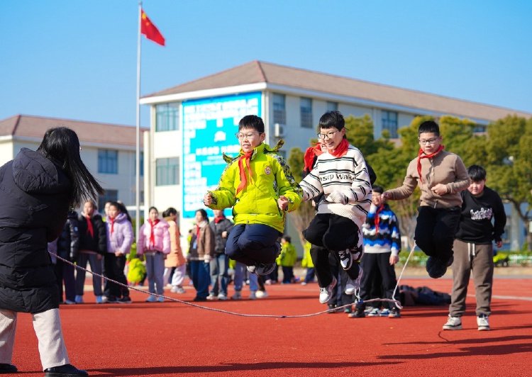 2025年2月18日,浙江省湖州市长兴县某小学,学生在课间休息时跳绳。 视觉中国 图