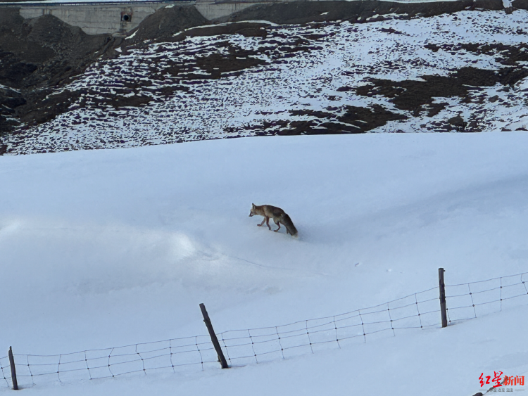 红星新闻记者采访当天,一只狐狸在雪地出现