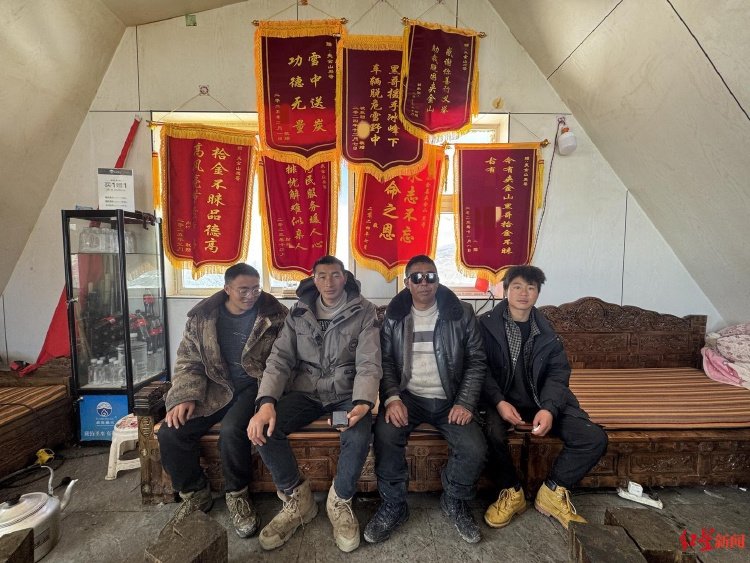 售货摊在积雪覆盖的垭口上显得格外清冷。只有走进去,才显得暖烘烘的。小屋里挂满了锦旗:“善行义举”“拾金不昧”“雪中送炭”……黑娃向红星新闻记者介绍,这些都是网友送的,有的是帮他们找回手机、相机等失物,有的是帮车辆和人员脱困。