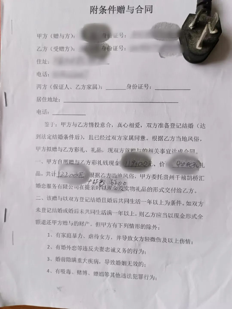 “跨省闪婚”男女双方签署的《附条件赠与合同》