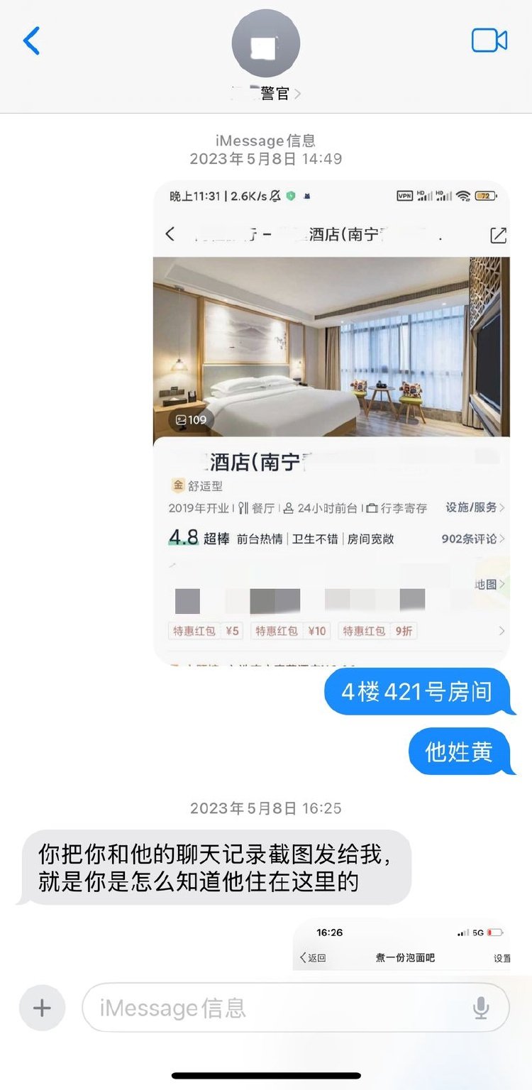 刘晓玲将黄某约至南宁一酒店后,立即再次报警。受访者供图