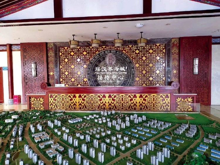 瑶汉养寿城接待中心空空如也,从现场的沙盘可以感受到项目的庞大。摄影/本刊记者 周群峰