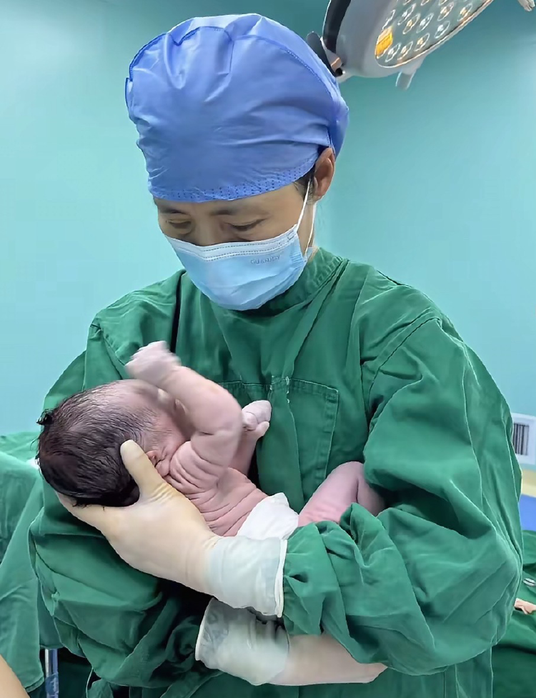 邵医生与新生儿。 图源:邵医生抖音平台视频截图