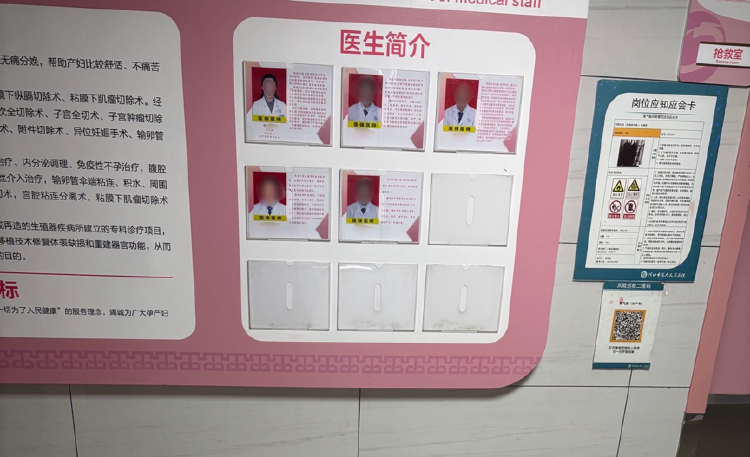 大门正对着的是门诊楼,也是邵医生坠楼的地方。西侧是综合病房楼,产科住院部在5层,走廊很安静。粉色的医生简介栏里,邵医生的照片还贴在第一位。
