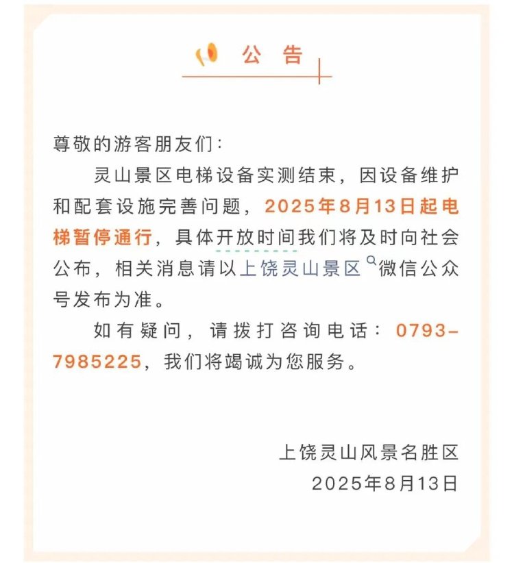 不过,扶梯收费显然早已被纳入考虑。据上饶广信文化旅游管理有限公司去年8月发布的招标公告,计划投入2亿元建设的“环灵山片区基础设施提升改造项目”,其中包括了“灵山景区天梯峰7个服务点”建设工程,主要为景区游览游客提供服务,兼顾景区扶梯售票等。在引发网络热议后,灵山超长扶梯仅实测一周,便于8月13日宣布暂停。“具体开放时间,以官方公布为准。”景区工作人员表示。