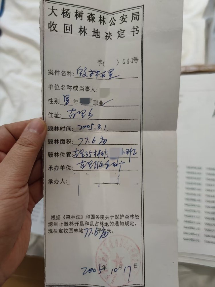 巨大的利益之下,毁林开荒现象出现反复,当地也随即升级对非法开地的打击力度,在2012年判处了首起非法开垦林地的实体刑案件,案发地就在大杨树镇。在此之前,打击以罚款、拘役,或者缓刑为主。