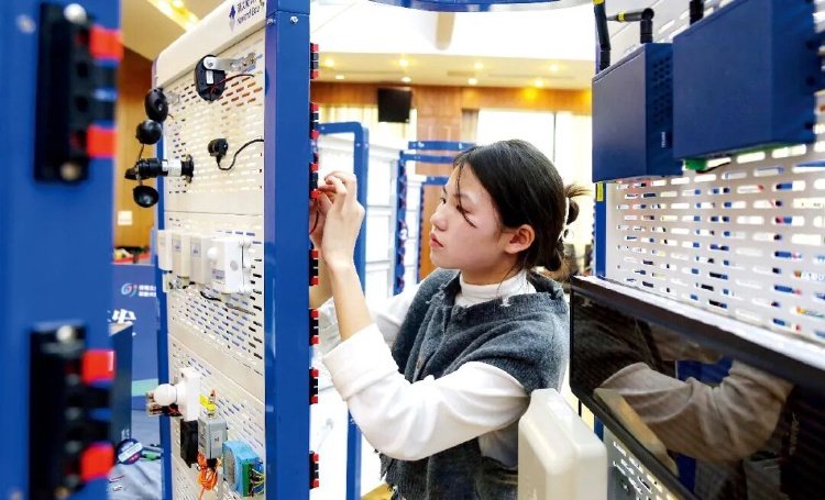 2024年4月,贵州省职业院校技能大赛暨全国职业院校技能大赛选拔赛期间,选手参加物联网应用开发赛项目。图/视觉中国