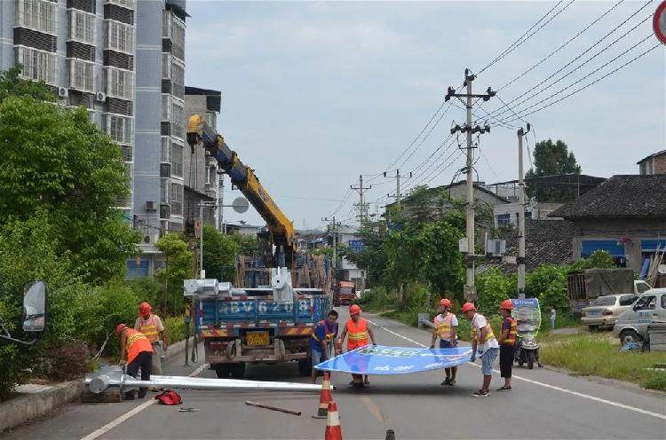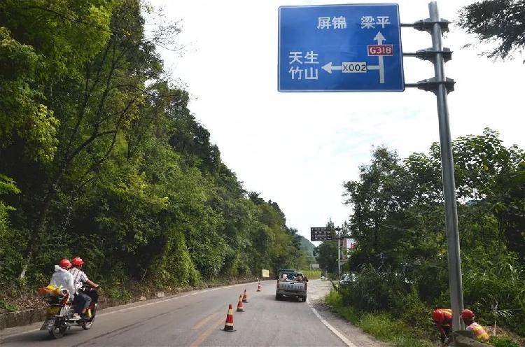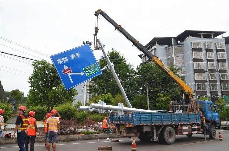 近日,在G318国道袁驿场镇段,施工人员正在加紧安装指示牌。