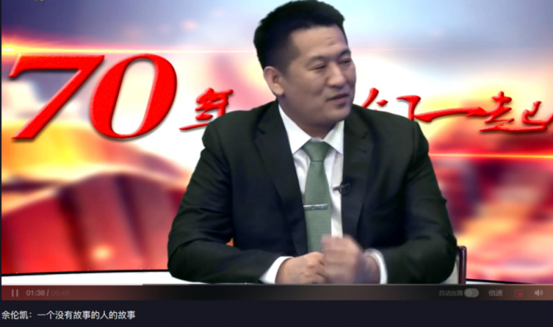 ·佘智江接受媒体采访。视频标题为《佘伦凯:一个没有故事的人的故事》。