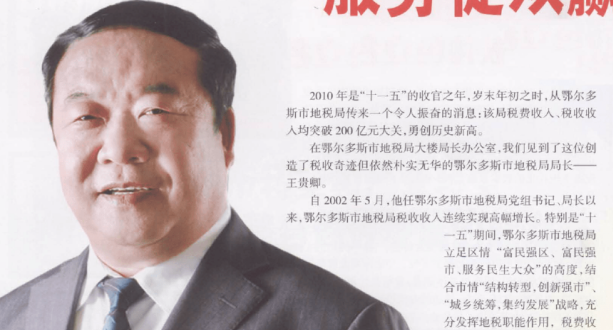 2001年4月,王贵卿任鄂尔多斯市地方税务局党组书记、副局长,次年5月任党组书记、局长。