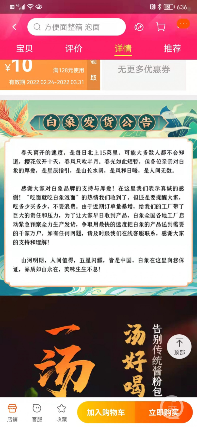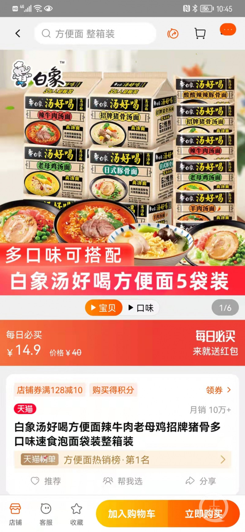 对这家再次被推上风口浪尖的方便面,网友再一次显示了惊人的购买力,到官方旗舰店“野性消费”。目前,该品牌旗舰店销售最高的一款方便面已经月销超10万,成为天猫方便面热榜第一名。而在另一个耳熟能详的方便面品牌旗舰店中,销量最高的单品为月销2万。