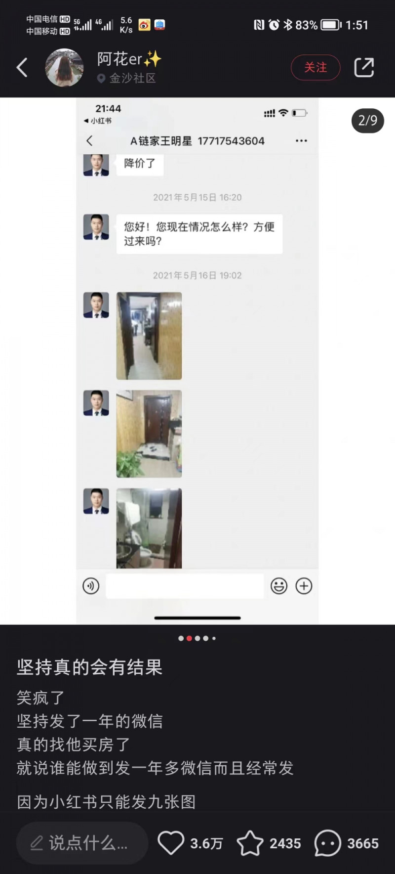 中介坚持发一年微信无回音,客户被感动真买了一套房