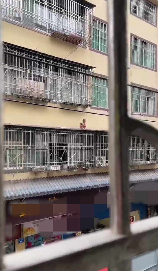 另一位目击者刘女士就住在娃娃家对面。她告诉上游新闻记者,昨天11点左右,楼下一位邻居发现娃娃站在雨棚上,赶紧呼救。刘女士的父亲听到喊声就下楼准备救人,几个邻居一开始准备徒手接,正在切菜的刘女士妈妈就从家里拿出一床大棉被。身为孕妇的她没办法下楼帮忙接孩子,只能尽力喊话,让孩子别动,撑到大家把床单和被子拉开,全程持续了三四分钟。她说,在大伙帮忙救人的时候,自己也尝试给孩子妈妈打视频通知她,但手都在抖。看到娃娃获救的那一刻,眼泪都下来了。