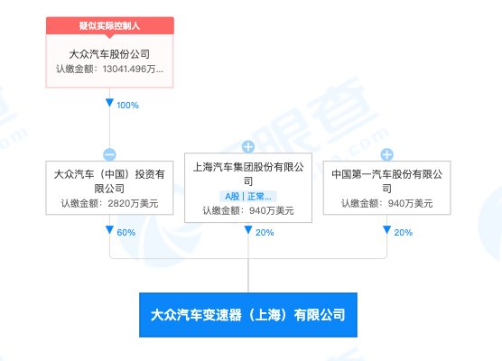 据天眼查APP,大众变速器上海公司成立于2001年10月,注册资本4700万美金。大众、一汽、上汽分别持股60%、20%和20%,总投资1.26亿美元。公司主要产品为MQ系列手动变速器,主要用于大众的A级车型,搭载该变速箱的车型包括捷达、桑塔纳、朗逸等车型。