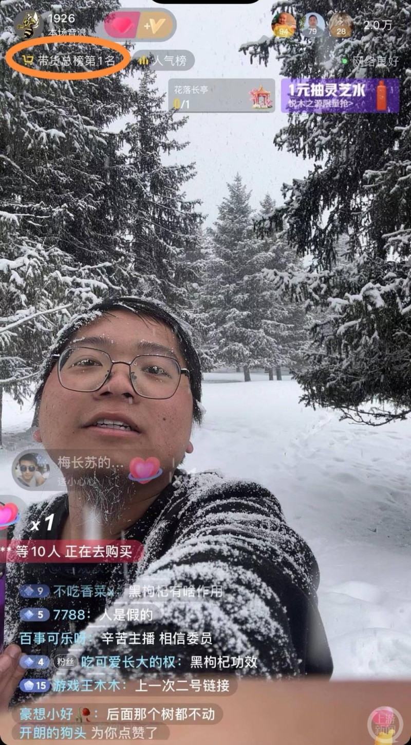 ▲“背景太假哥”刘元杰春节期间在某直播平台带货第一。