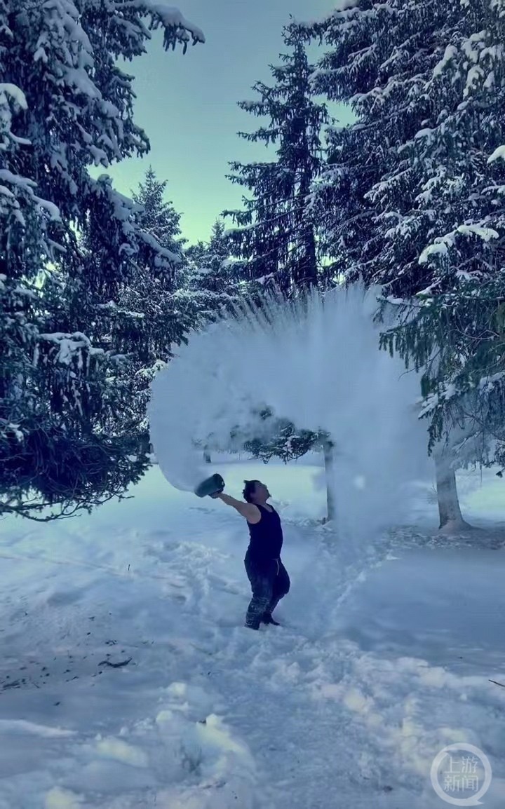 刘元杰所说的“上山搞直播”不是套话,1月27日他真的冒着零下37度的低温,在冰天雪地的户外,光着膀子演示了泼水成冰。这么冷的在户外直播,难道不会感到冷?刘元杰表示:“我直播之前做好了防寒保暖的工作,拍视频的时间很短,我又比较亢奋,就感受不到寒气了。”